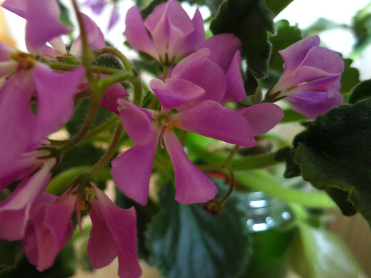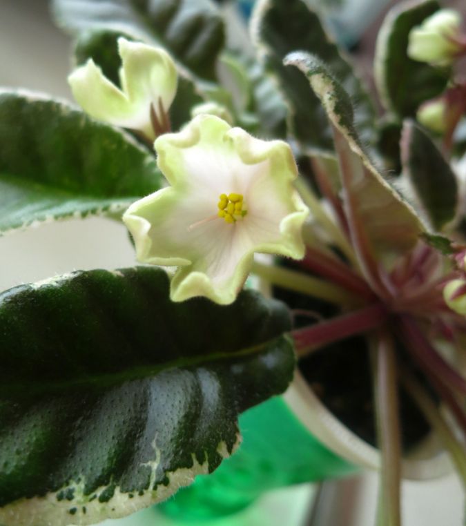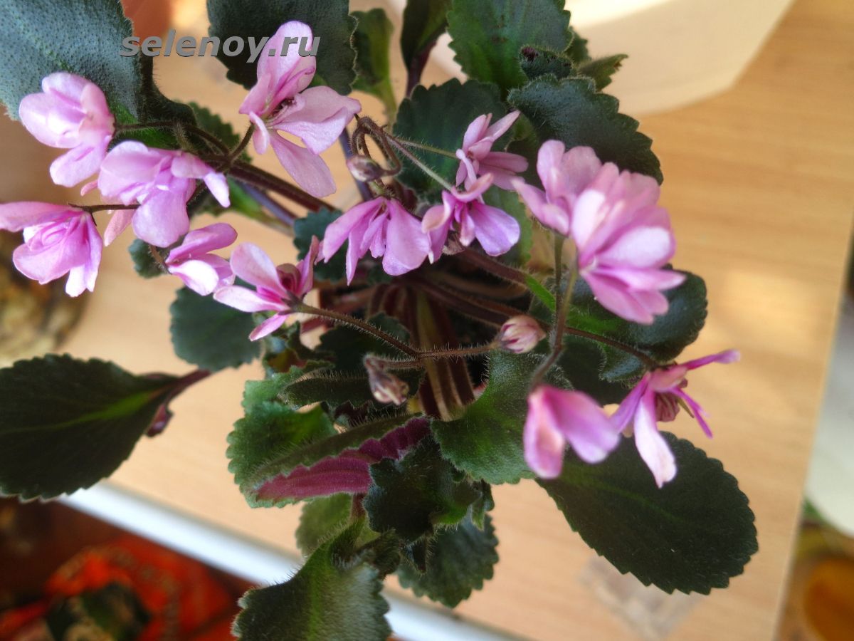 Senk’s Blue Cascade 01/30/2008(9850) (R.Follet/D.Senk) Простые ярко-голубые осы с более светлым оборотом лепестков; блестящая темно-зеленая ложковидная удлиненная листва с удивительной бело-розовой изнанкой, похожей на кожу. Молодые листья свернуты в плотные трубочки; взрослые по форме напоминают индейскую пирогу. Иногда проявляется пестролистность. П/мини трейлер. Single blue wasp. Variegated dark green and pink, spooned, heart-shaped, longifolia, hairy, ruffled, serrated. Semiminiature trailer |
